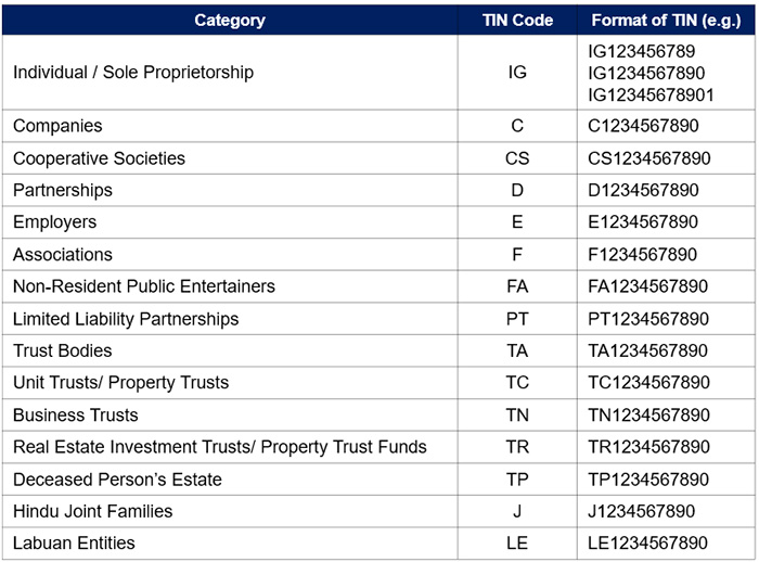 General format of TIN (Source: malaysia-tin.pdf):